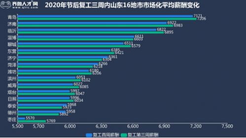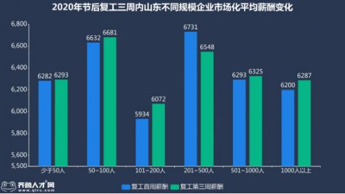 随着人才市场的渐渐回稳,企业招聘薪酬也有理性调整,复工第三周山东市场化平均薪酬总体呈上升趋势。
